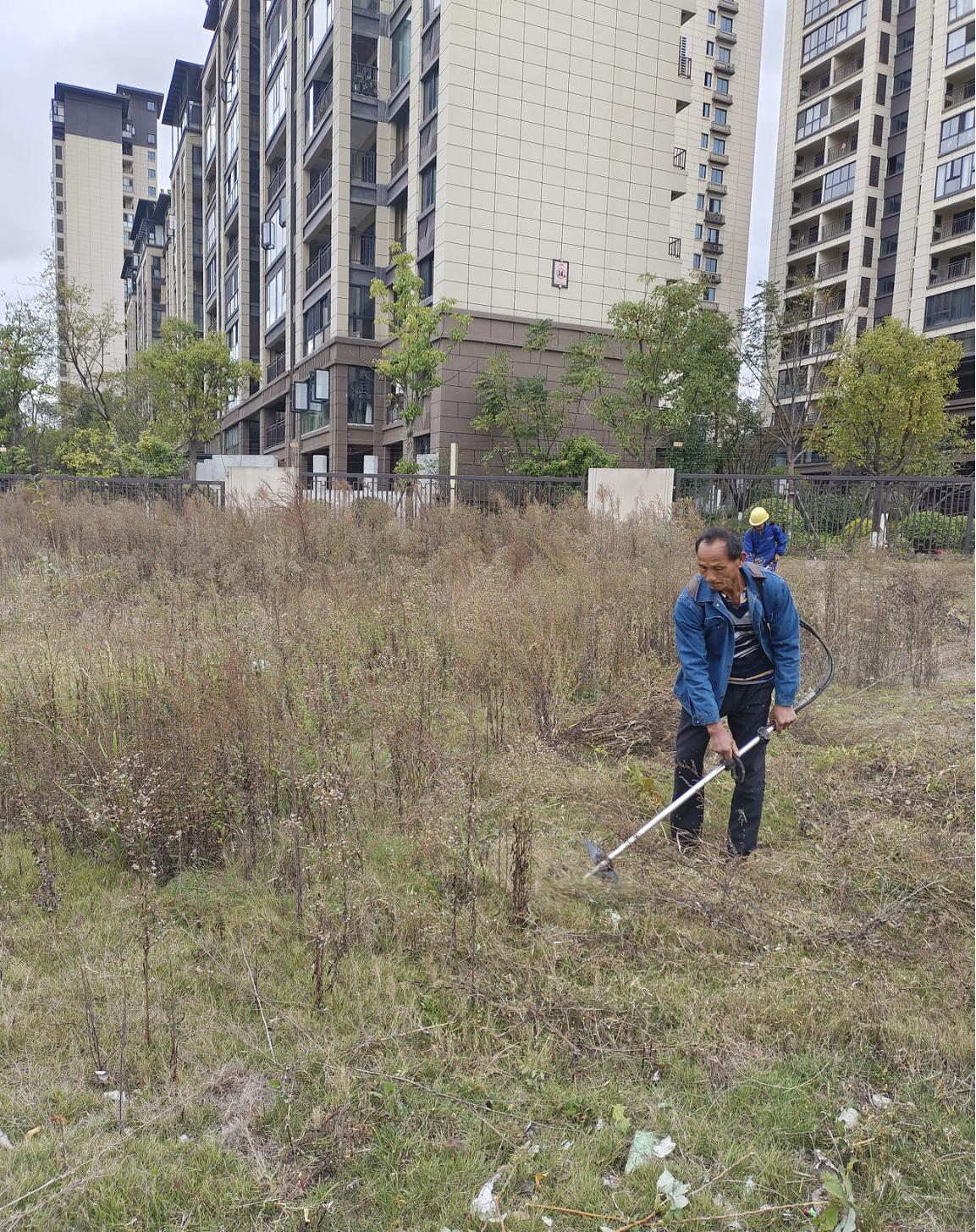 11月27日,在曉華門(mén)店約2公里的粟裕公園,物業(yè)人員快速行動(dòng),帶上鐮刀等機具開(kāi)始清除遍地雜草。雜草面積較寬且密集重生,為避免受到蛇類(lèi)攻擊,工作人員不時(shí)提醒現場(chǎng)作業(yè)人員“注意安全”。經(jīng)過(guò)兩天努力,近10畝的荒草基本清除完畢,將在適宜時(shí)節播撒花種。屆時(shí),粟裕公園將會(huì )變得更加美麗,切實(shí)提升居民幸福感。