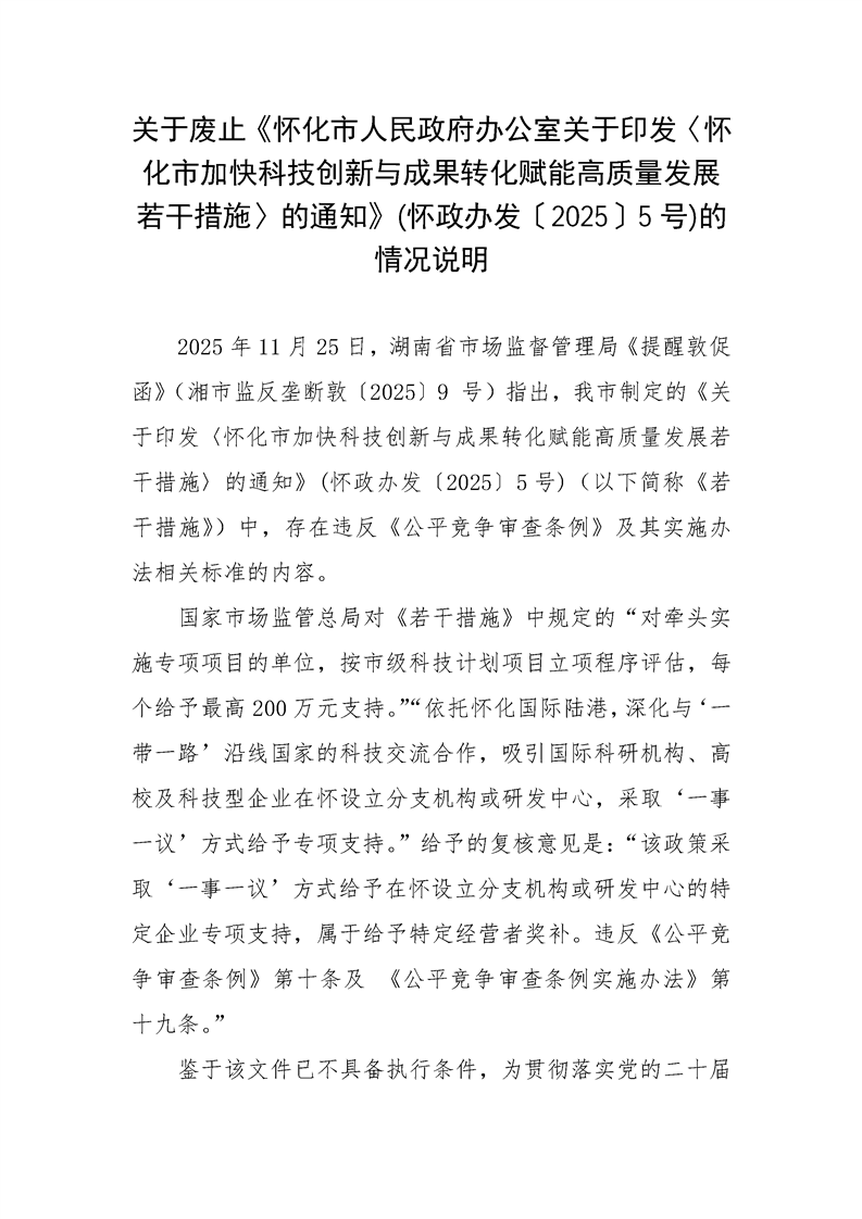 解讀:關(guān)于廢止《懷化市人民政府辦公室關(guān)于印發(fā)〈懷化市加快科技創(chuàng)新與成果轉(zhuǎn)化賦能高質(zhì)量發(fā)展若干措施〉的通知》(懷政辦發(fā)〔2025〕5號(hào))