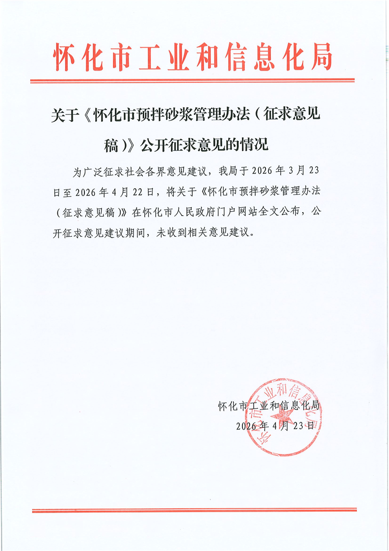 關(guān)于《懷化市預拌砂漿管理辦法(征求意見稿)》公開征求意見的情況