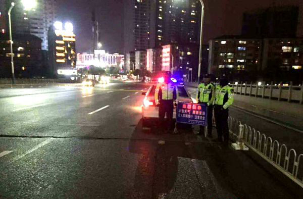 (圖為懷化交警在寒夜中執(zhí)勤,確保車輛安全通行。)