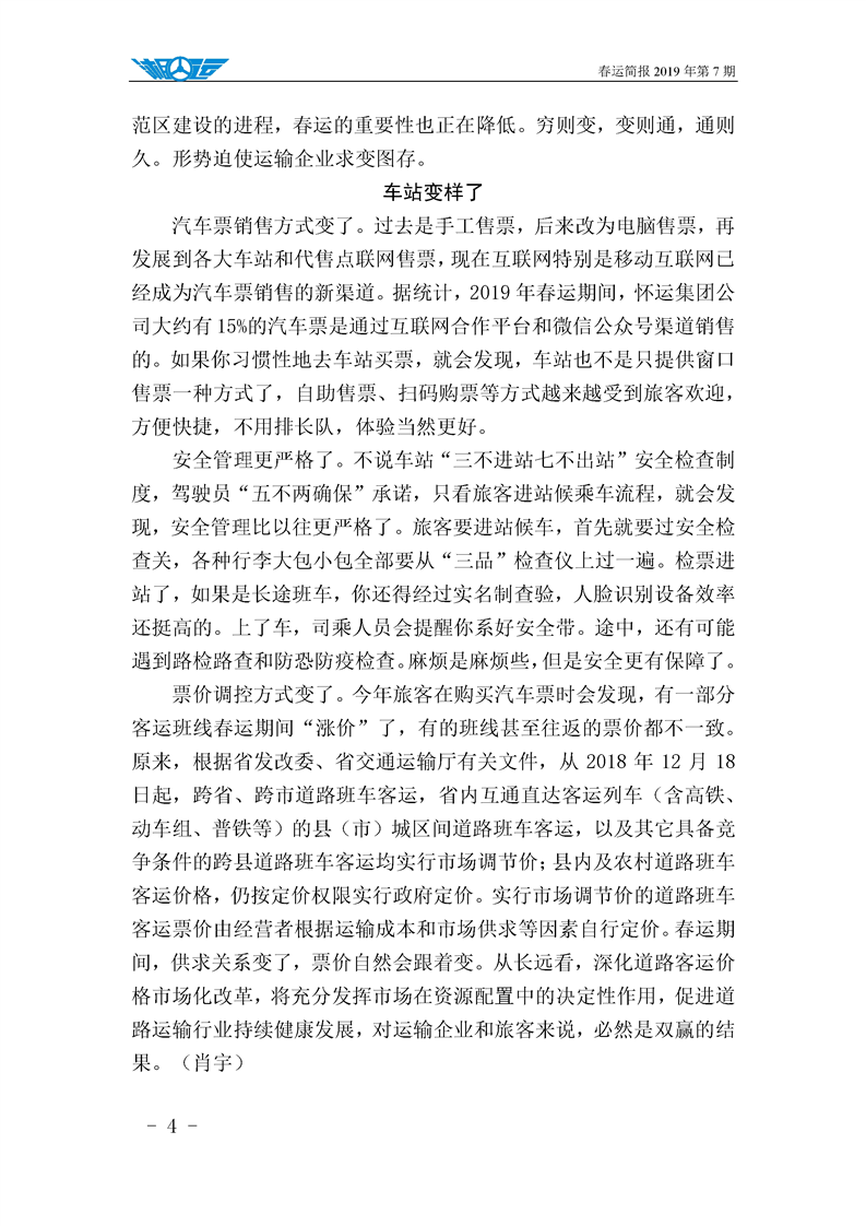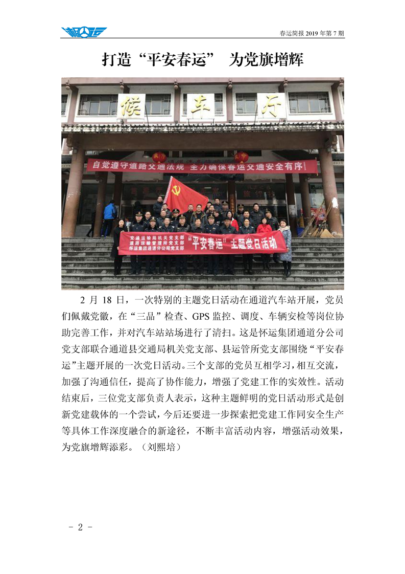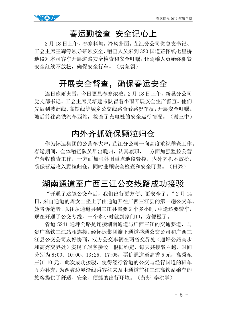 2019年湖南懷化公路運輸集團有限責任公司春運簡報(第七期)