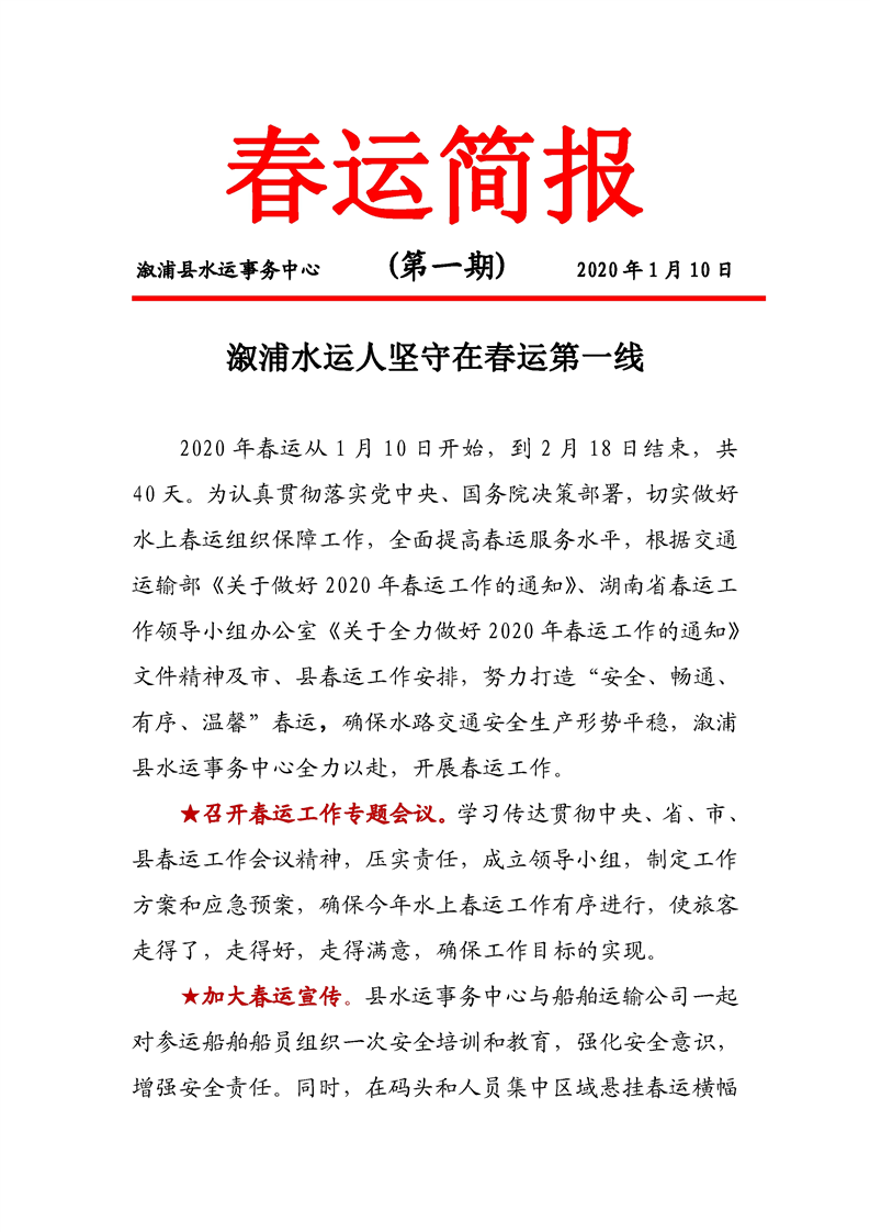 溆浦縣水運(yùn)事務(wù)中心春運(yùn)簡(jiǎn)報(bào)第一期