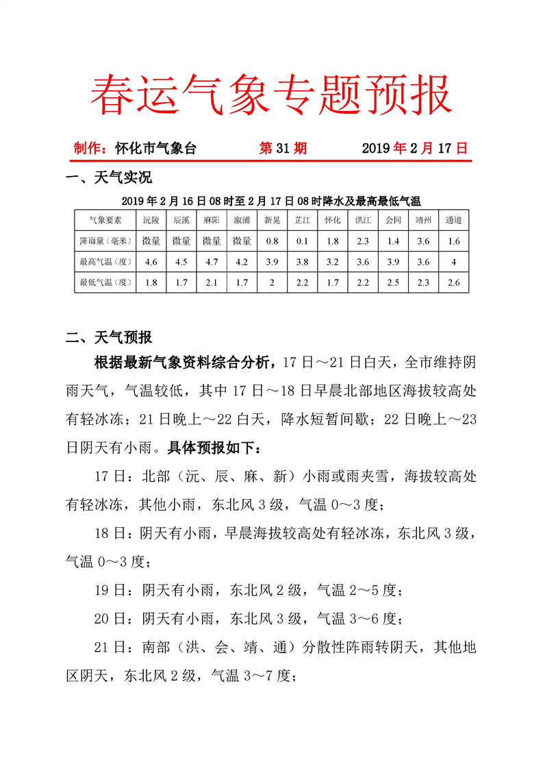 春運(yùn)氣象專題預(yù)報(bào)(第31期)