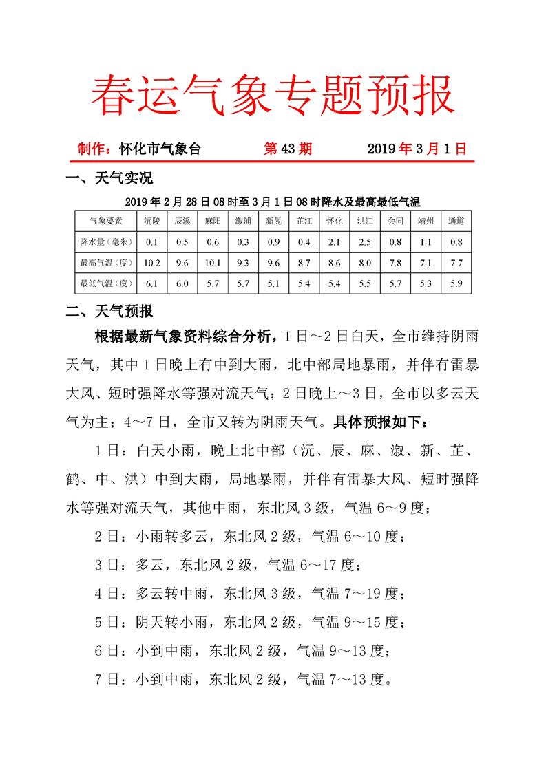 春運(yùn)氣象專題預(yù)報(bào)(第43期)
