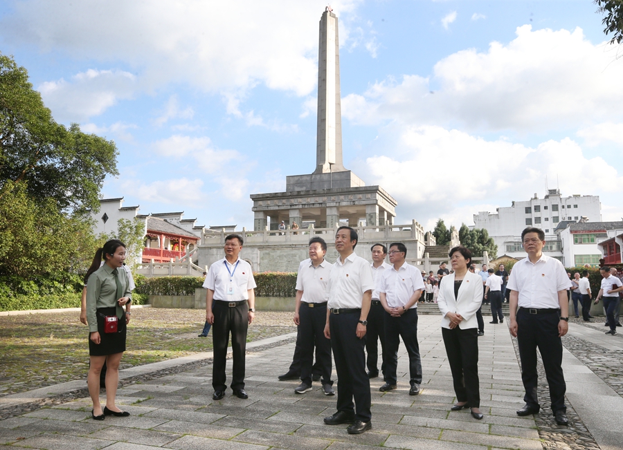 來到寨前鎮(zhèn),許達(dá)哲一行到紅六軍團西征誓師地,瞻仰了誓師紀(jì)念廣場等。許達(dá)哲指出,紅六軍團突圍西征,為中央紅軍長征起到了偵察、探路的先遣隊作用。我們要充分發(fā)揚這種探索開拓精神,甘當(dāng)偉大事業(yè)的“馬前卒”、爭做開拓進(jìn)取的“急先鋒”。