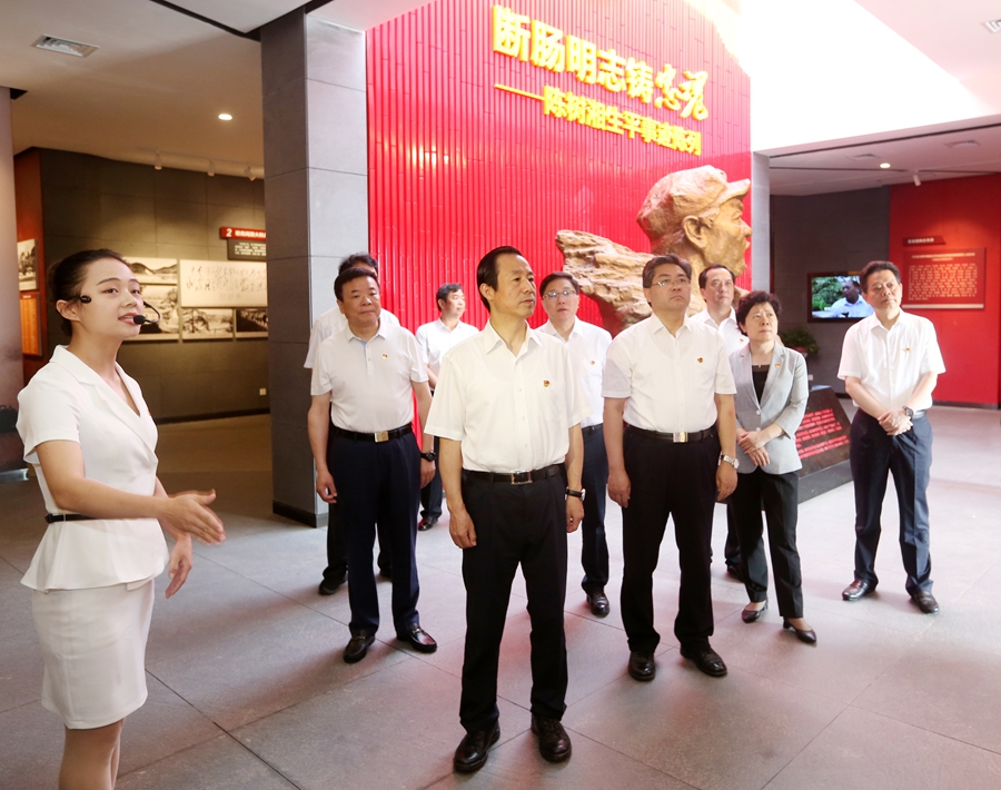 2014年10月,在福建古田召開的全軍政治工作會議上,習(xí)近平總書記講述了中國工農(nóng)紅軍第三十四師師長陳樹湘“斷腸明志”的壯烈故事。來到陳樹湘烈士犧牲地永州道縣,許達(dá)哲一行前往道縣烈士紀(jì)念園,瞻仰了陳樹湘烈士墓,向紅三十四師烈士紀(jì)念碑獻(xiàn)花,并在陳列室中了解了陳樹湘烈士和他率領(lǐng)的紅三十四師的革命事跡。大家深刻體會到,學(xué)習(xí)陳樹湘“斷腸明志”的故事,就是要進(jìn)一步堅定理想信念,保持對黨的絕對忠誠,勇于為理想信念獻(xiàn)身、為黨的事業(yè)奉獻(xiàn)一切。