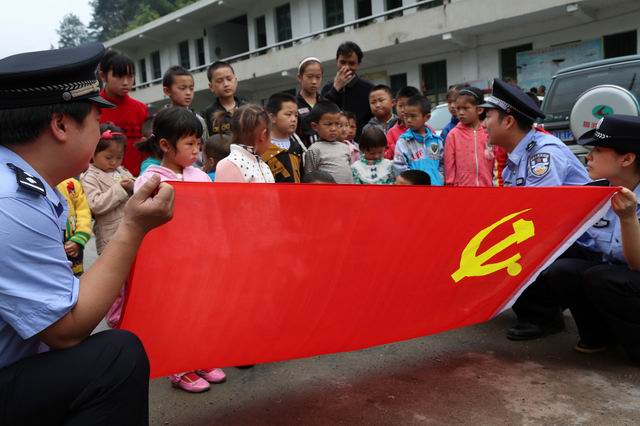“六一”國(guó)際兒童節(jié)即將來(lái)臨,5月27日,湖南省辰溪縣公安局組織青年民警,帶著文具、書(shū)包、水果等禮物,來(lái)到該縣十分偏僻的田灣鎮(zhèn)選場(chǎng)村,和村里的留守兒童們提前過(guò)“六一”節(jié),讓留守兒童們感受了節(jié)日的氛圍和祖國(guó)大家庭的溫暖?;顒?dòng)中,民警還為同學(xué)們同學(xué)們講解了國(guó)旗、黨旗的含義,號(hào)召同學(xué)們從小熱愛(ài)祖國(guó)、熱愛(ài)黨,立志做一個(gè)對(duì)社會(huì)有用人,并一起升起了國(guó)旗。
