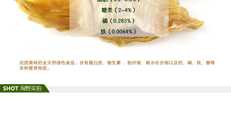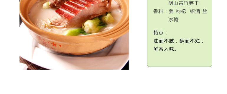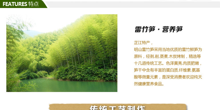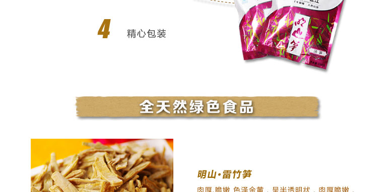 品牌: 明山筍 包裝方式: 袋裝 保質(zhì)期: 一年 凈重: 238g 生產(chǎn)許可證: QS4312 1601 0412,QS4312 1601 0412 產(chǎn)品標(biāo)準(zhǔn)號(hào): SB/T 10439-2007,SB/T 10439-2007 配料表: 雷竹鮮筍、食用精鹽,雷竹鮮筍、食用精鹽 儲(chǔ)藏方法: 冷藏或置于陰涼干燥處,冷藏或置于陰涼干燥處 食品添加劑: 無(wú) 產(chǎn)地: 湖南省 懷化市 芷江侗族自治縣 |
