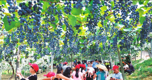 2013年9月16日,市內(nèi)外賓客在中方縣桐木鎮(zhèn)大松坡村葡萄園采摘葡萄。 (陸曉鵬 攝)
