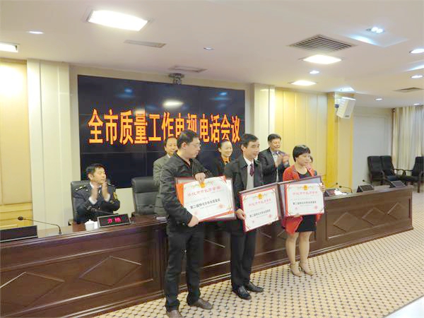 李暉市長代表市委市政府向獲獎單位表示祝獲并頒發(fā)證書牌匾,鼓勵企業(yè)在各自的行業(yè)和領域,嚴格質量控制和管理,帶動全市質量工作水平上臺階。