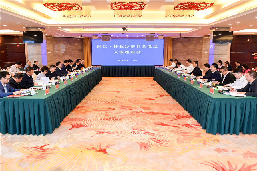 (4月22日,懷化市黨政代表團(tuán)赴銅仁市學(xué)習(xí)考察。圖為銅仁·懷化經(jīng)濟(jì)社會(huì)發(fā)展交流座談會(huì)現(xiàn)場(chǎng)。)