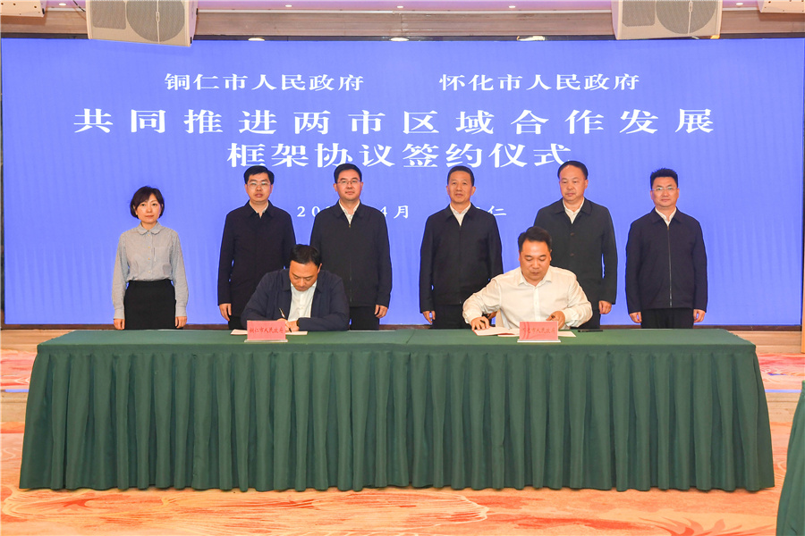 (銅仁市政府與懷化市政府簽訂共同推進(jìn)兩市區(qū)域合作發(fā)展框架協(xié)議。)