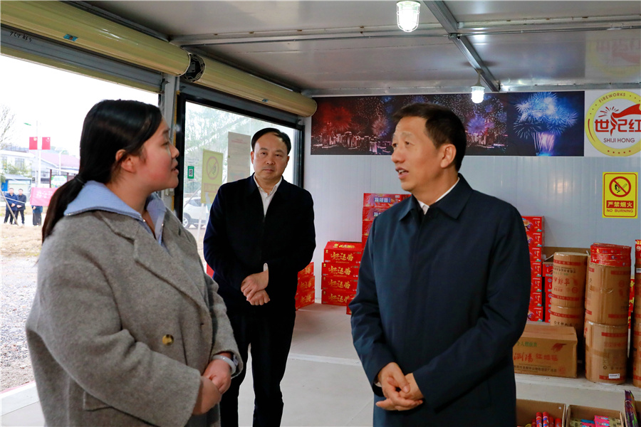 (2月25日下午,市委書記許忠建在城區(qū)檢查督導安全生產(chǎn)工作。圖為許忠建在炫通煙花鞭炮店與門店老板深入交流,詳細了解煙花爆竹儲存規(guī)范、消防設施配備及日常安全管理情況。懷化日報全媒體記者 彭軍 攝)