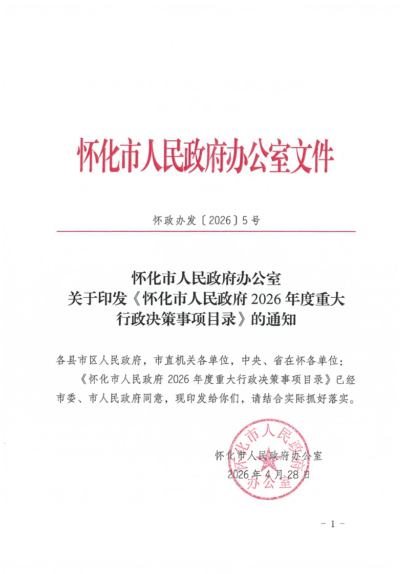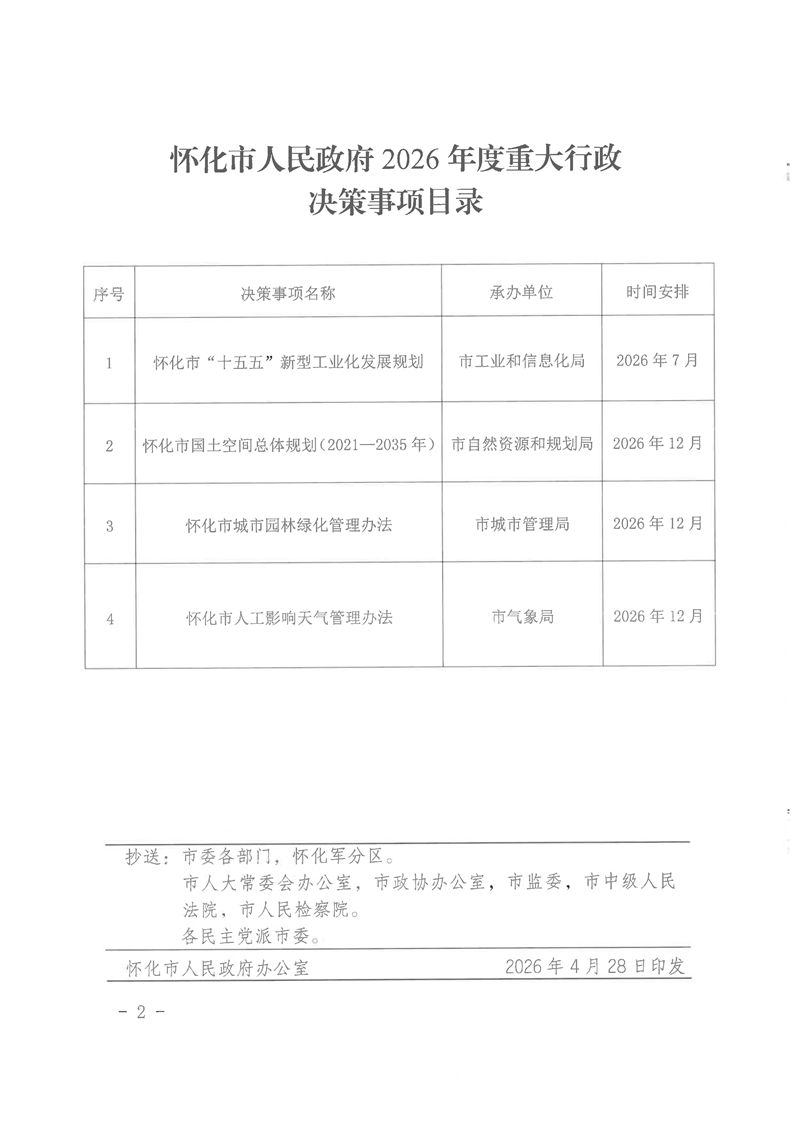 關于印發(fā)《懷化市人民政府2026年度重大行政決策事項目錄》的通知