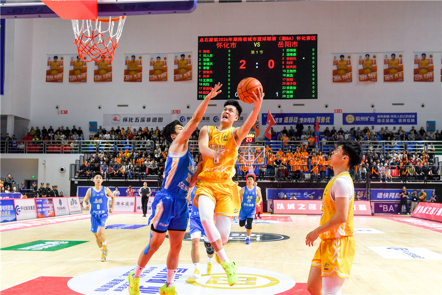 4月12日晚,湖南省城市籃球聯(lián)賽(湘BA)常規(guī)賽第四輪懷化隊主場迎戰(zhàn)岳陽隊比賽在懷化市體育中心籃球館舉行。懷化隊以68:57力克岳陽隊贏得勝利。圖為比賽精彩瞬間。