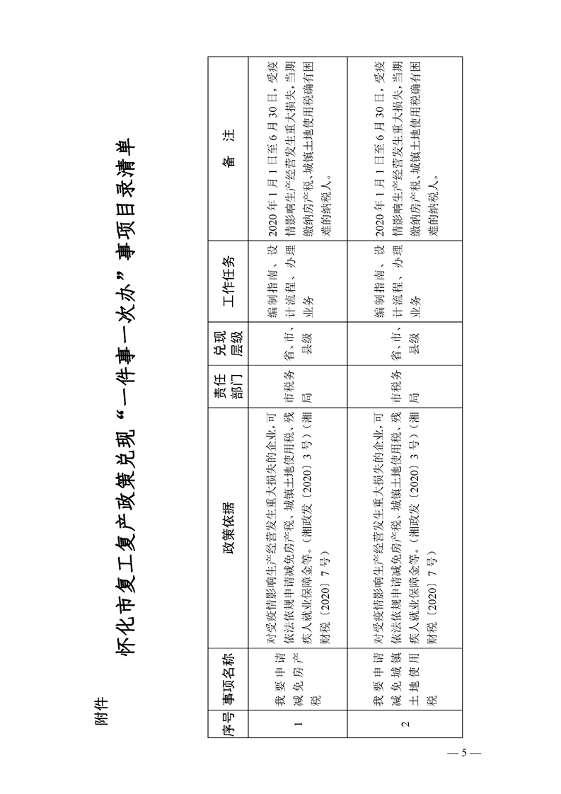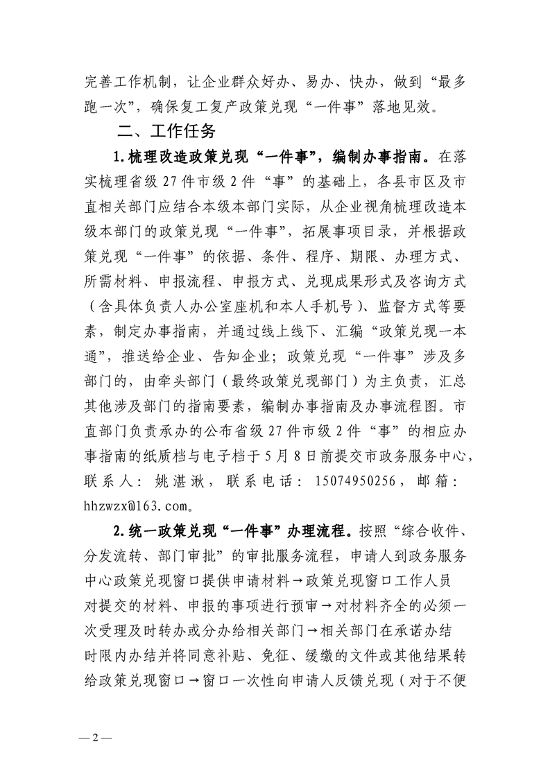 懷化市推進復(fù)工復(fù)產(chǎn)政策兌現(xiàn)“一件事一次辦”工作實施方案