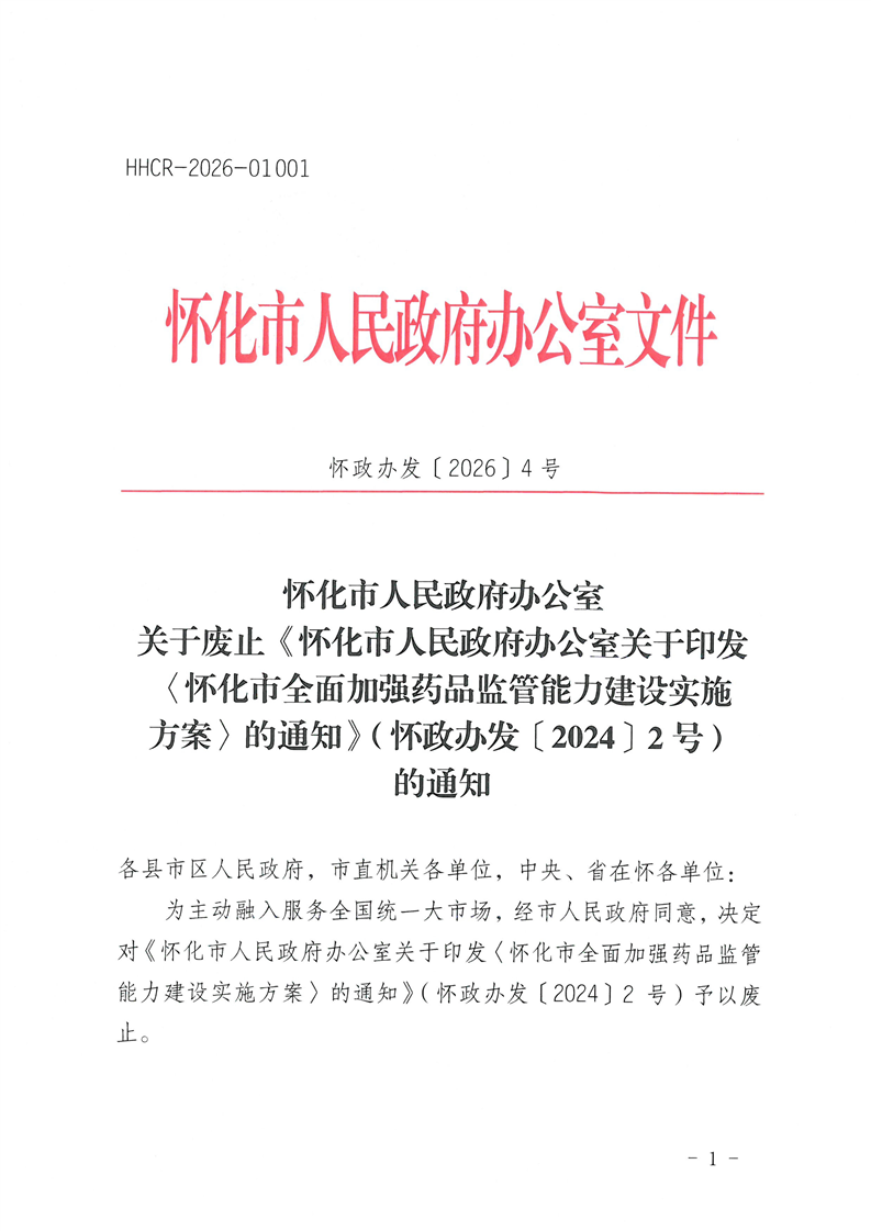 文號:懷政辦發(fā)〔2026〕4號