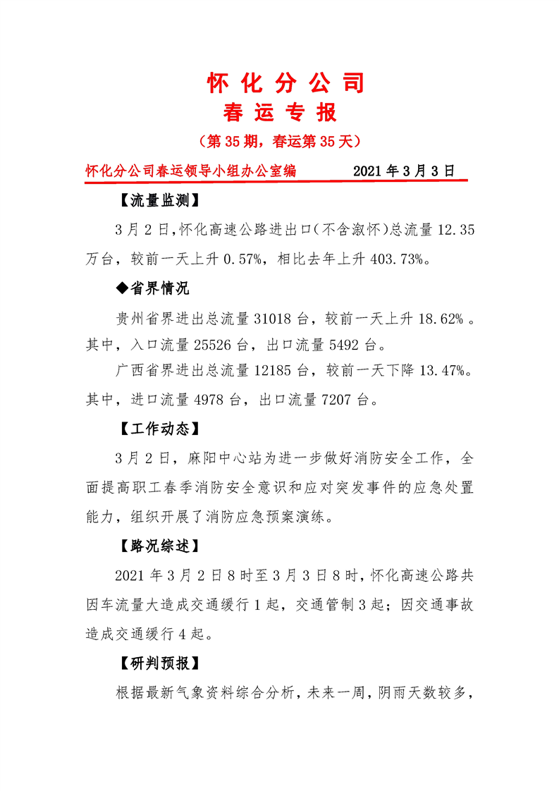 省高速集團(tuán)懷化分公司第35期春運(yùn)專報