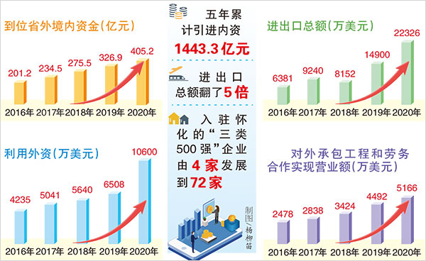五年累計引進內資1443.3億元,進出口總額翻了5倍,入駐懷化的“三類500強”企業(yè)由4家發(fā)展到72家——