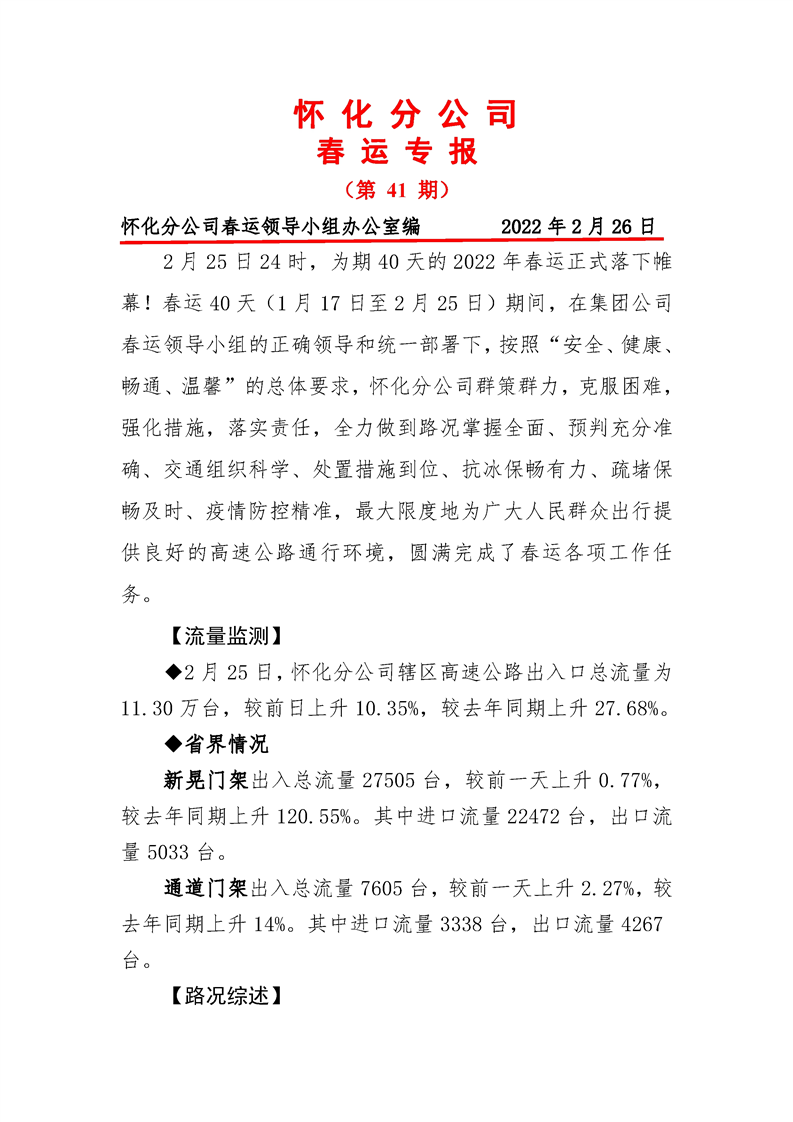 2022年高速懷化分公司第41期春運(yùn)專報