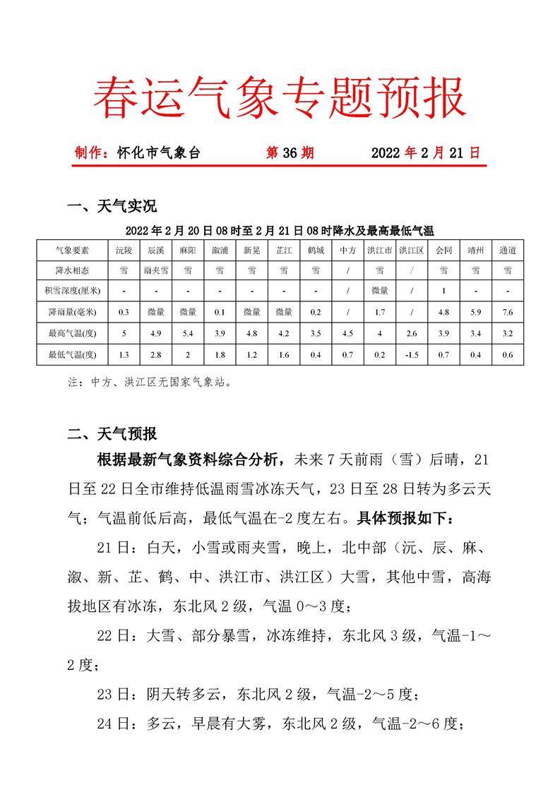春運氣象專題預(yù)報 第36期