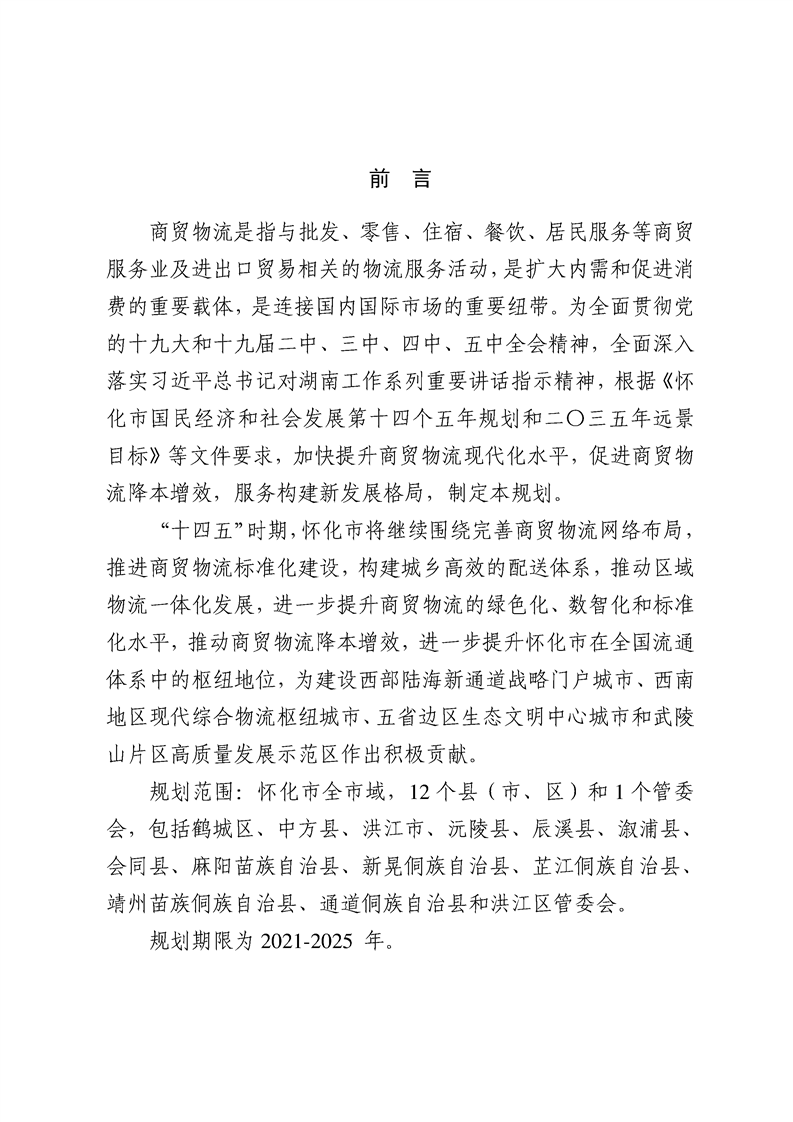 懷化市“十四五”商貿物流發(fā)展規(guī)劃