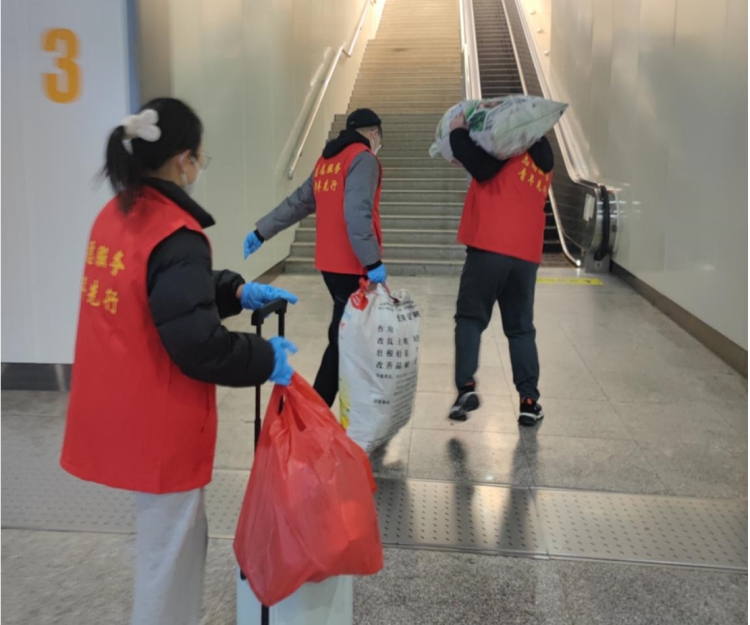青年志愿者經(jīng)過(guò)培訓(xùn),穿上馬甲,奔赴服務(wù)崗位。青年志愿者們合理分工,有的在進(jìn)站口提醒旅客提前準(zhǔn)備好身份證,有的在安檢口協(xié)助行李過(guò)檢,有的在咨詢(xún)臺(tái)熱心答疑,對(duì)于老弱病殘等特殊群體,志愿者們還會(huì)進(jìn)行送站服務(wù)。青年志愿者們不畏嚴(yán)寒,堅(jiān)守崗位,積極熱情地開(kāi)展春運(yùn)服務(wù)工作,紅色的身影不停穿梭在旅客中間,以自身的行動(dòng)溫暖旅客的回家路!
