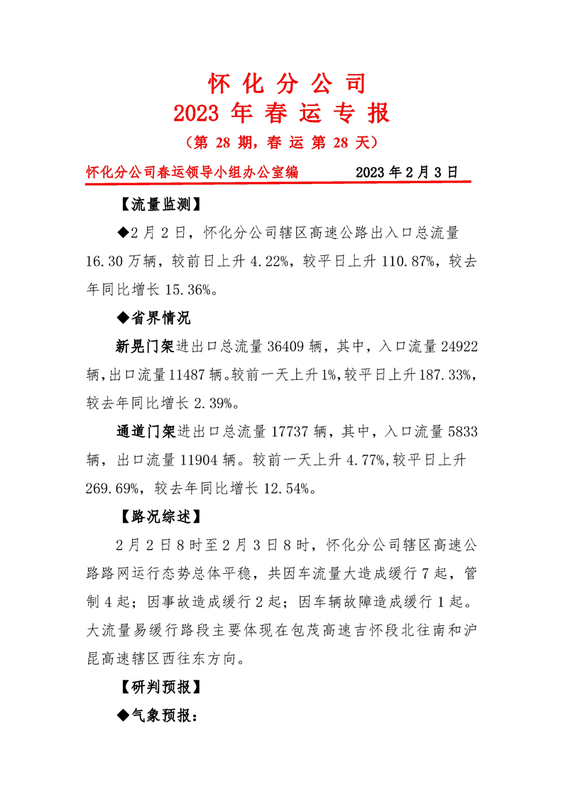 2023年懷化分公司春運(yùn)專(zhuān)報(bào)-第28期