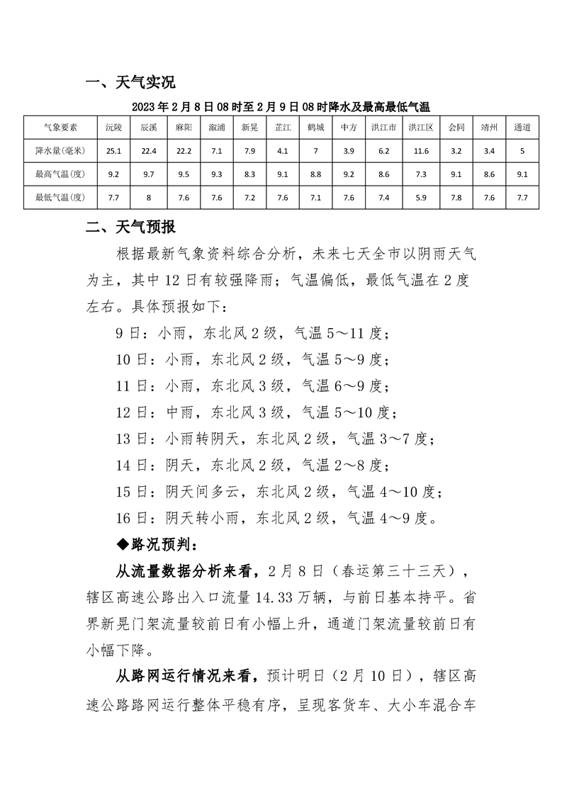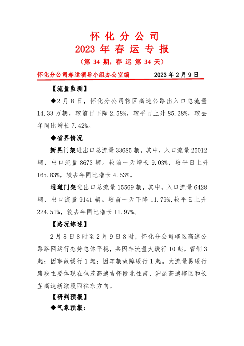 2023年懷化分公司春運專報-第34期
