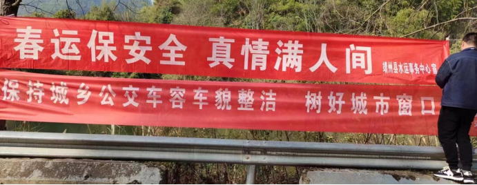 1月10日,靖州縣水運事務(wù)中心在多個鄉(xiāng)鎮(zhèn)懸掛水運安全宣傳標(biāo)語