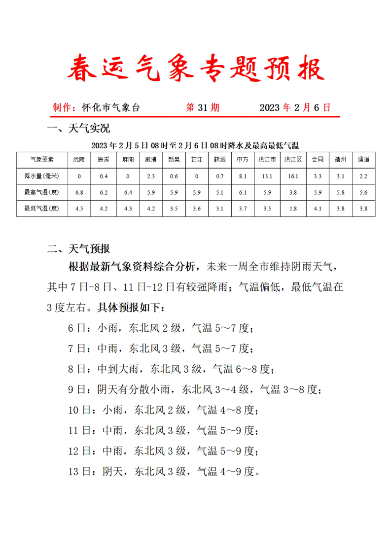 春運氣象專題預報 第31期