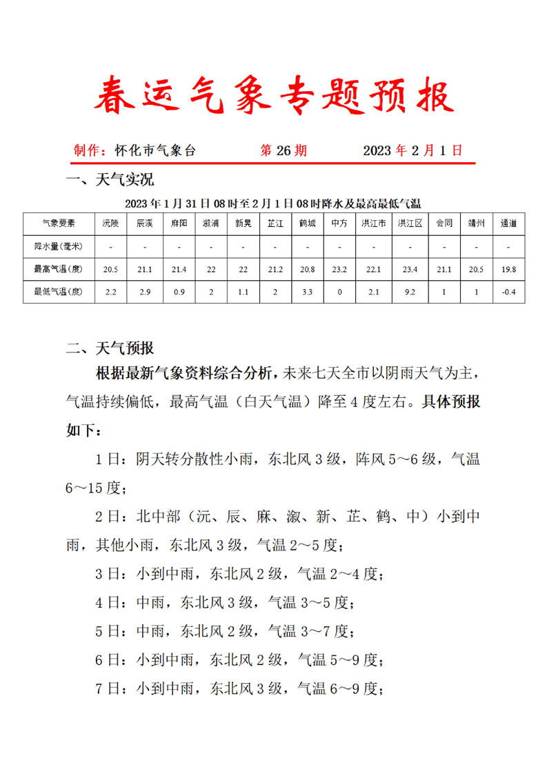 春運(yùn)氣象專題預(yù)報(bào) 第26期