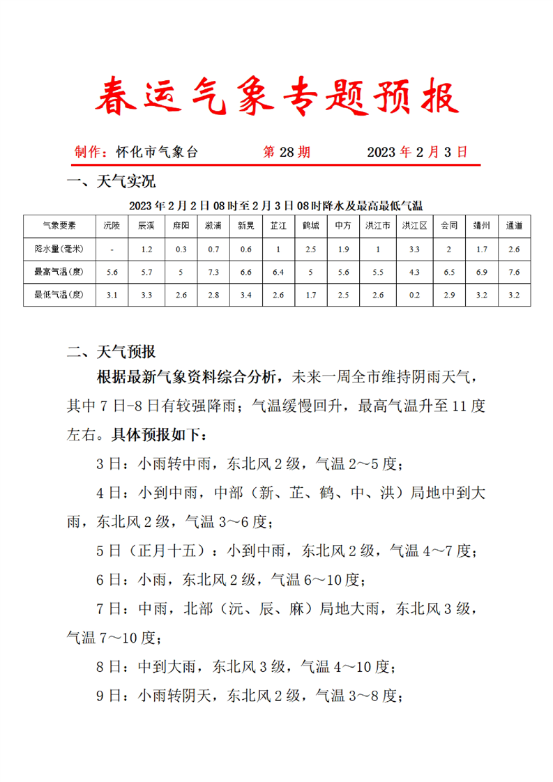 春運(yùn)氣象專題預(yù)報(bào) 第28期