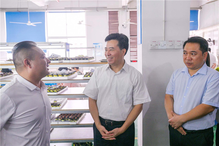 9月12日上午,市委副書記、市長黎春秋在鶴城區(qū)調(diào)研企業(yè)穩(wěn)崗擴(kuò)崗促就業(yè)工作。圖為黎春秋在懷化海紅盛電子科技有限公司調(diào)研。(懷化日報(bào)全媒體記者 潘雨 攝)