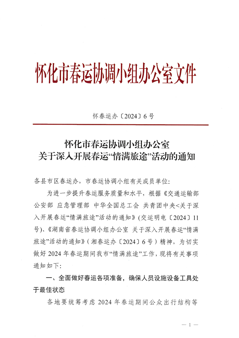 懷化市春運協(xié)調小組辦公室關于深入開展春運“情滿旅途”活動的通知