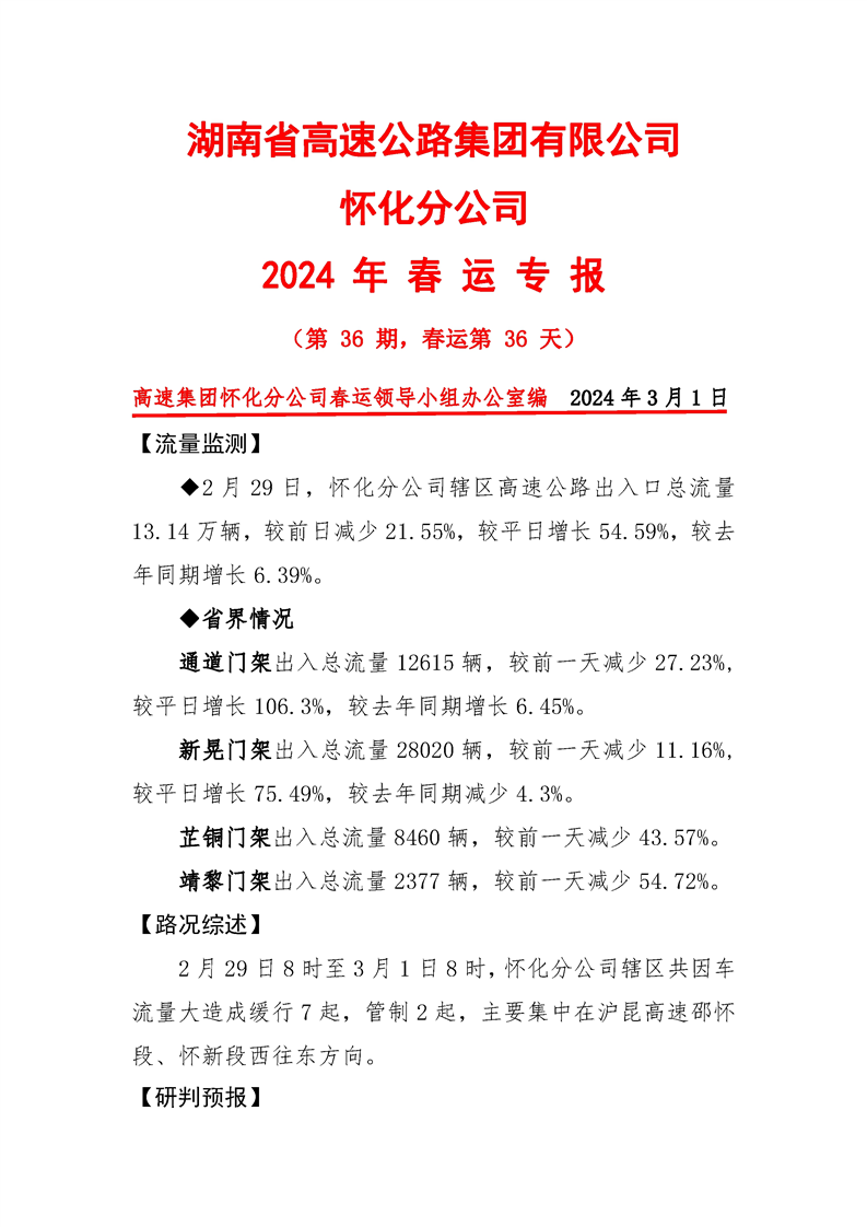 2024年懷化分公司春運(yùn)專報(bào)-第36期