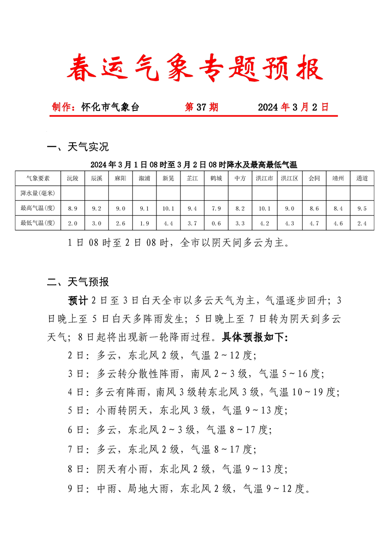 春運(yùn)期間氣象專題預(yù)報2024030210-037