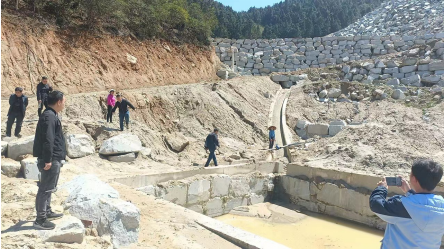 當(dāng)天,牽頭單位洪江市自然資源局組織市水利局、懷化市生態(tài)環(huán)境局洪江市分局、洪江市農(nóng)業(yè)農(nóng)村局、洪江市灣溪鄉(xiāng)人民政府,到舉報點灣溪鄉(xiāng)云峰村涉事礦業(yè)公司現(xiàn)場進行核實。經(jīng)過現(xiàn)場觀測勘查和相關(guān)證照及批文收集,確認礦山自2021年12月30日采礦許可證到期后一直停采,該區(qū)域臨時用地手續(xù)、環(huán)評手續(xù)齊全,沒有占用耕地的情況。場內(nèi)廢水經(jīng)收集沉淀處理后全部循環(huán)使用,修建有一座雨水收集池和應(yīng)急處理池等循環(huán)設(shè)備用以實現(xiàn)雨污分離。工作人員和當(dāng)?shù)厝罕娨黄鸬匠恋沓亍⒂晁鏊诩案浇r(nóng)田實地查驗,發(fā)現(xiàn)沉淀池出水較清澈,無泥沙,附近農(nóng)田和雨水出水口水流清澈,沒有泥沙流入農(nóng)田,但在棄土場底部附近有約十多平方米旱土被少量的泥沙掩蓋。當(dāng)即對企業(yè)負責(zé)人提出整改要求,目前涉事企業(yè)組織人員按照方案已完成對棄土場底部附近旱土泥沙的全面清理,共清理泥沙約2m3,疏通水渠約5米,安裝了水閥1個。