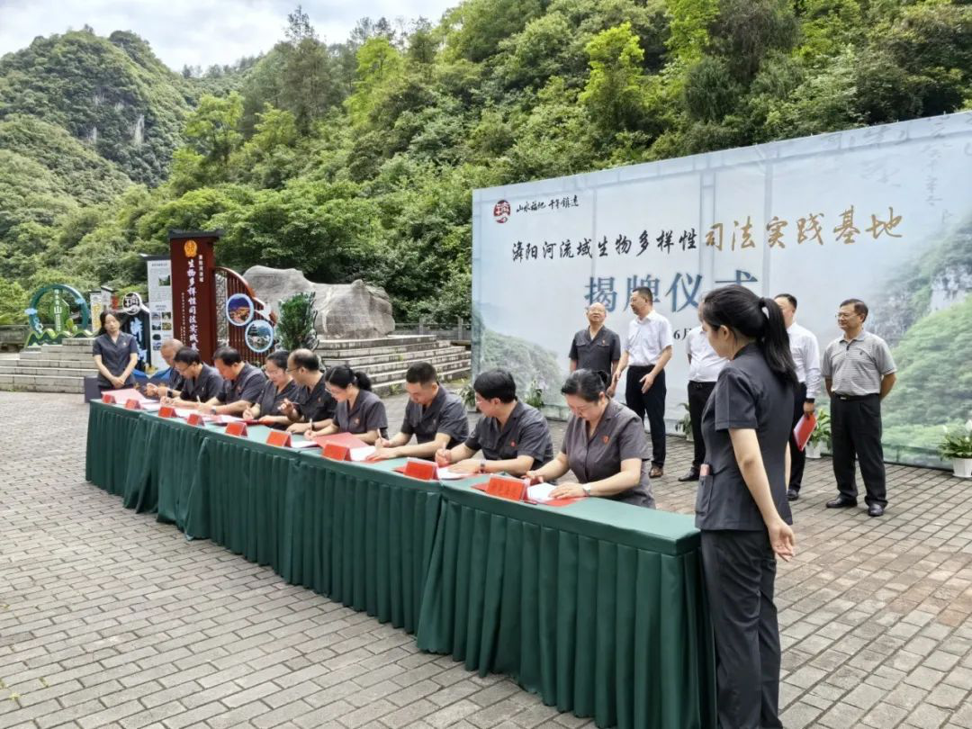 6月5日是世界環(huán)境日,新晃縣人民法院黨組書記、院長(zhǎng)楊琳慧帶隊(duì)與貴州省鎮(zhèn)遠(yuǎn)縣、甕安縣、黃平縣、施秉縣、岑鞏縣、玉屏侗族自治縣、銅仁市碧江區(qū)人民法院在貴州省鎮(zhèn)遠(yuǎn)縣下?陽河景區(qū)游客服務(wù)中心廣場(chǎng)開展“?陽(水)河流域生物多樣性司法實(shí)踐基地”揭牌活動(dòng),并共同簽署了《?陽(水)河全流域環(huán)境資源跨省州縣司法保護(hù)協(xié)作機(jī)制》。