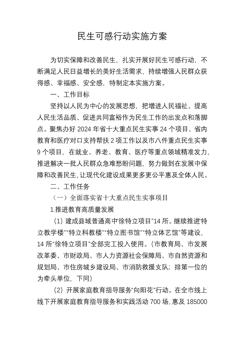 [政策]民生可感行動(dòng)實(shí)施方案