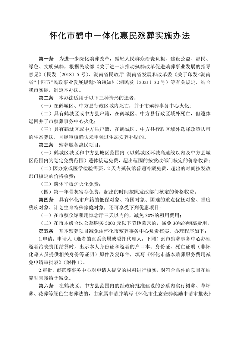 關(guān)于印發(fā)《懷化市鶴中一體化惠民殯葬實(shí)施辦法》的通知