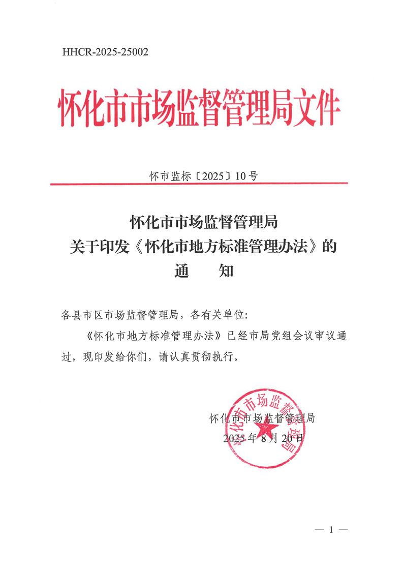 關(guān)于印發(fā)《懷化市地方標(biāo)準(zhǔn)管理辦法》的通知