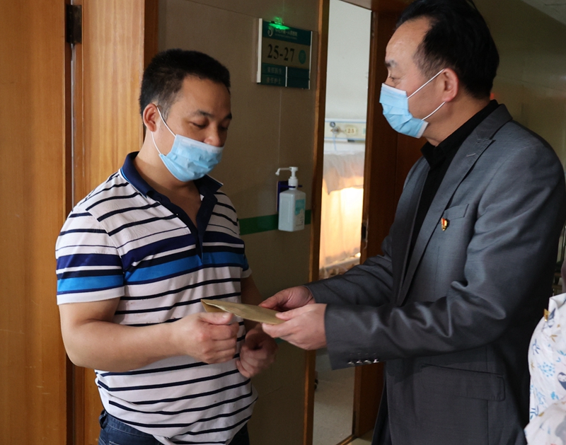 5月26號,市城建投公司黨委委員、監事會(huì )主席劉運祥帶領(lǐng)部分黨員代表到懷化市第一人民醫院看望溆浦縣龍潭鎮諶孫華一家并送去了善款一萬(wàn)余元,盡綿薄的力量緩解諶孫華一家燃眉之急。