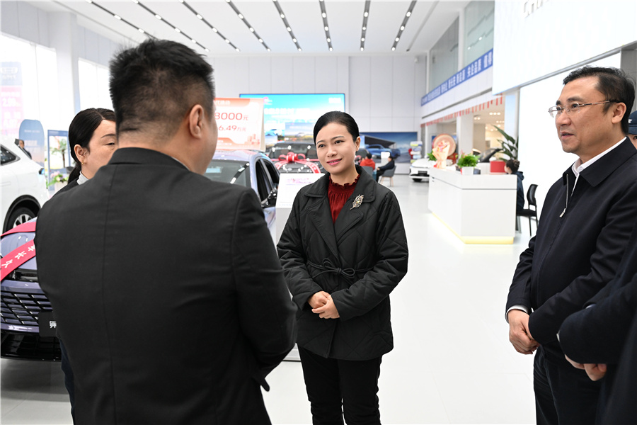 在懷化和美昌汽車貿(mào)易有限公司,韋朝暉詳細(xì)了解汽車出口及企業(yè)經(jīng)營發(fā)展情況,勉勵(lì)企業(yè)搶抓汽車出口黃金機(jī)遇期,持續(xù)擴(kuò)大出口規(guī)模,不斷提升海外市場份額。她強(qiáng)調(diào),各相關(guān)部門要主動靠前服務(wù),優(yōu)化發(fā)展環(huán)境,做好政策扶持與配套完善工作,助力企業(yè)做大做強(qiáng)。要認(rèn)真落實(shí)國家以舊換新政策,積極開展主題鮮明、形式多樣、群眾喜聞樂見的消費(fèi)活動,營造濃厚消費(fèi)氛圍。