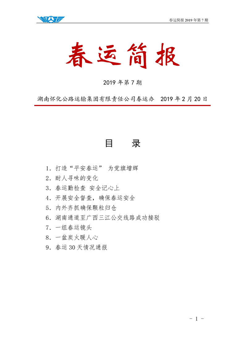 2019年湖南懷化公路運輸集團有限責任公司春運簡報(第七期)