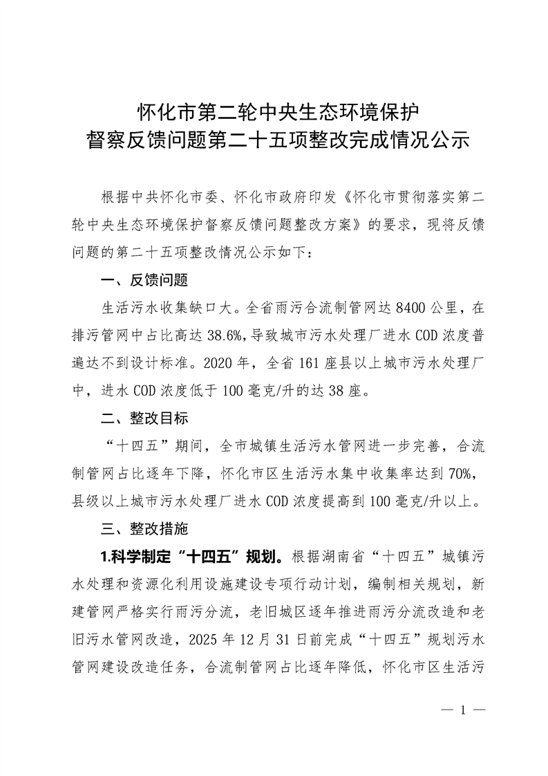 懷化市第二輪中央生態(tài)環(huán)境保護(hù)督察反饋問(wèn)題第二十五項(xiàng)整改完成情況公示
