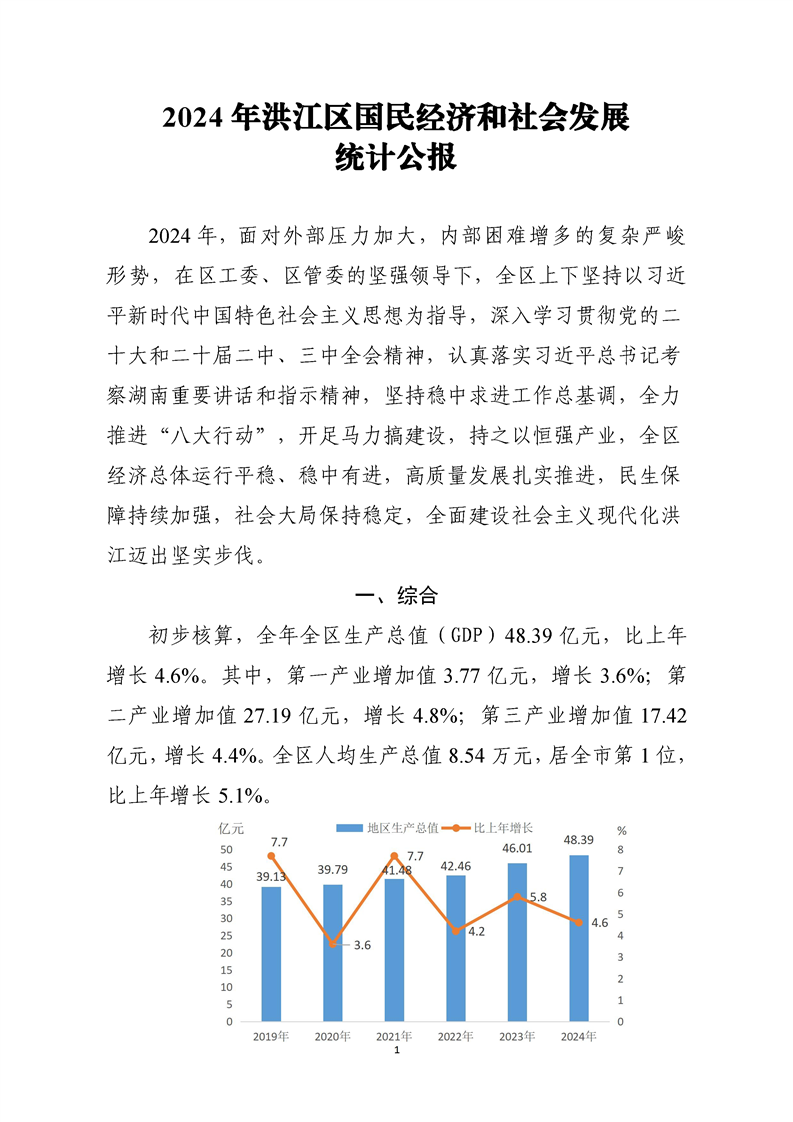 2024年洪江區(qū)國民經(jīng)濟(jì)公報