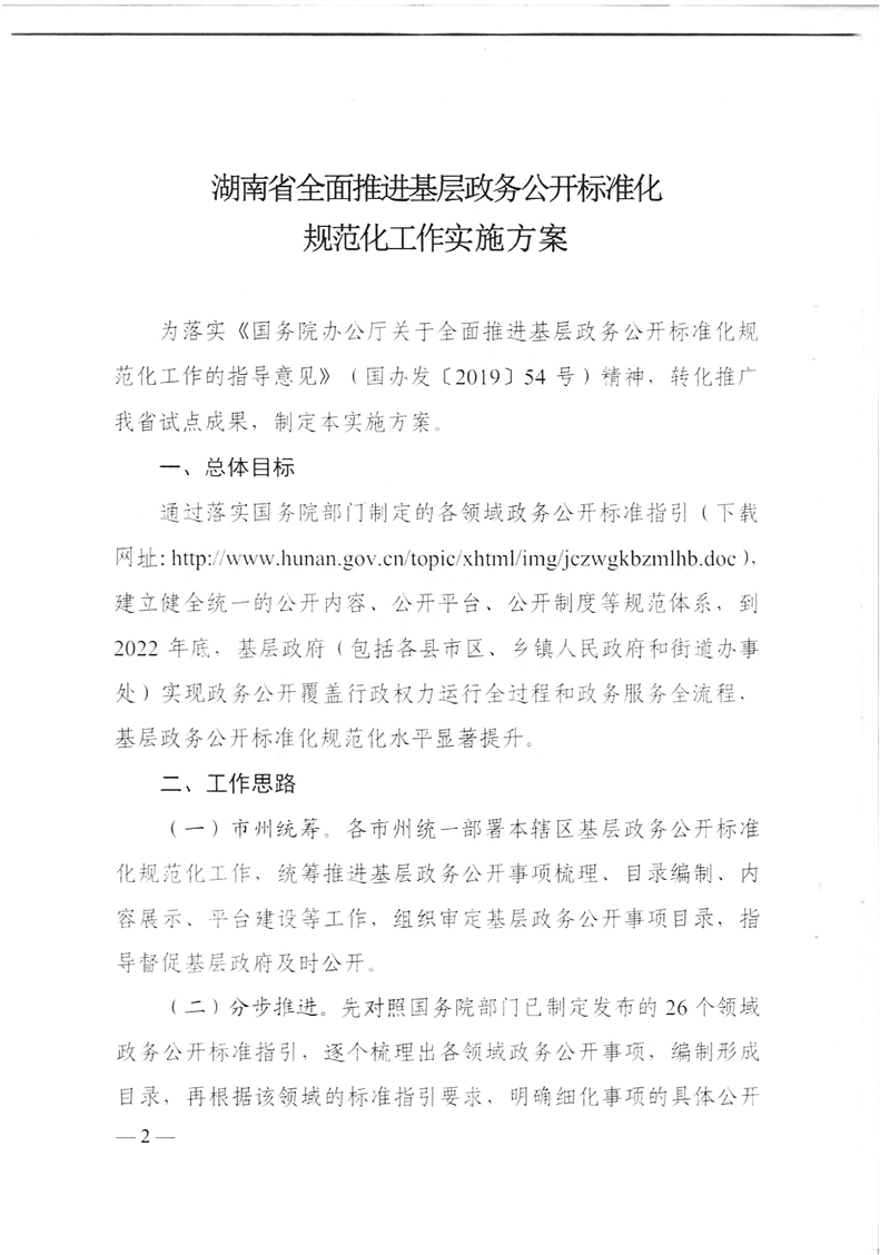 湖南省政務(wù)公開政務(wù)服務(wù)領(lǐng)導(dǎo)小組辦公室關(guān)于印發(fā)《湖南省全面推進(jìn)基層政務(wù)公開標(biāo)準(zhǔn)化規(guī)范化工作實(shí)施方案》的通知(湘政務(wù)公開辦發(fā)〔2020〕1號(hào))