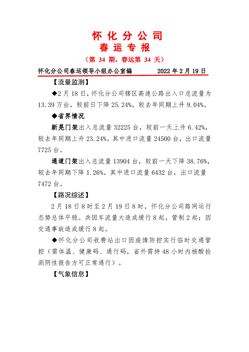 2022年高速懷化分公司第34期春運(yùn)專(zhuān)報(bào)