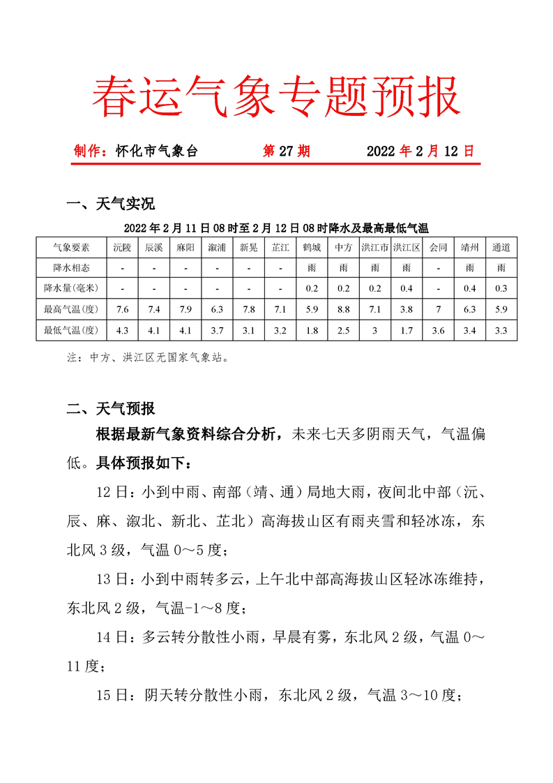 春運氣象專題預(yù)報 第27期